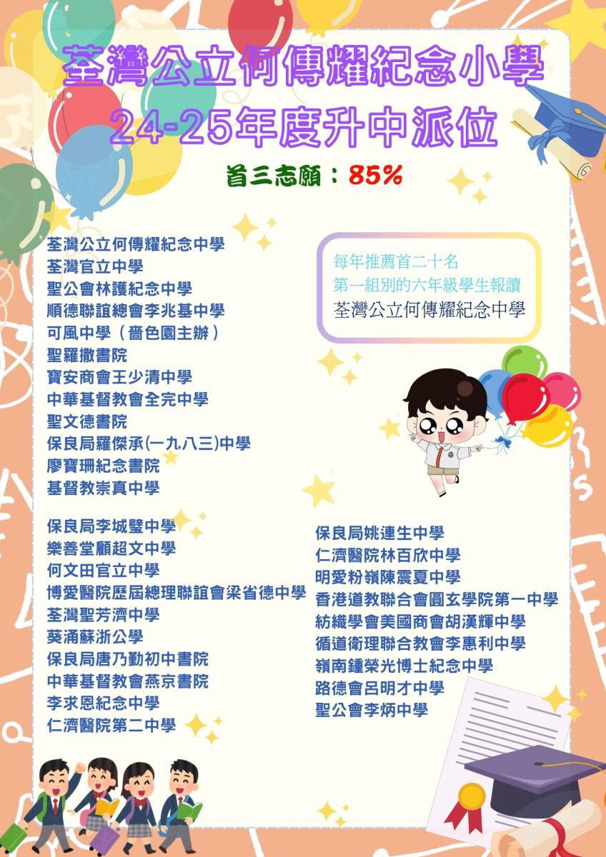 - 舉辦校內升中家長會,讓五、六年級學生及其家長了解整個派位機制及掌握選校策略,為升中派位早作準備